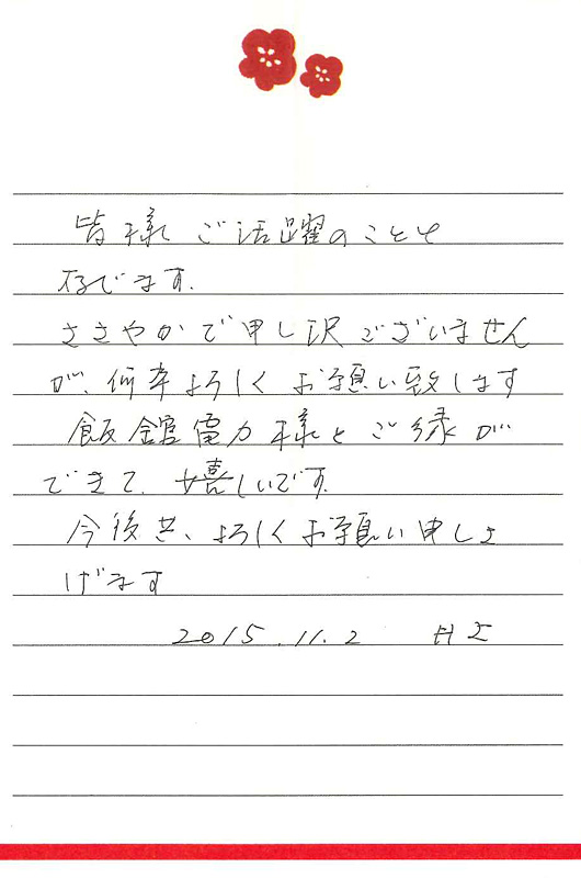 」。その三千円は和紙に包まれたまま、いまも大切に会社の金庫にしまわれているそうです。