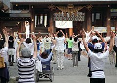 そこで注目されているのが、『養生訓』にヒントを得て考案されたという「ながら運動」。たとえば、布団から起き上がる前には、手足を上げてブラブラさせ、むくみの予防。部屋の中で歩くときは、爪先立ちの「エレガンスウォーク」で、ふくらはぎを鍛える。洗濯物を干すときには、「洗濯バンザイ」のポーズで頭の上で広げて肩凝りの予防、などなど。家庭でいつでもできる運動を続けることで、日常的に身体を動かし、養生につなげようというものです。