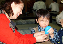 もっとも、このような両者の密なふれあいは、どこの施設でも行えるものではありません。江東園では1989年に、各課の職員が横断的にかかわることのできる「ふれあい促進委員会」を立ち上げ、お年寄りと園児の双方を熟知している職員の知恵を結集し、交流を促すための方法と、さまざまなプログラムを作っていったそうです。職員の高い志とたゆまぬ努力が、園児とお年寄りたちの輝く笑顔を支えているのです。
