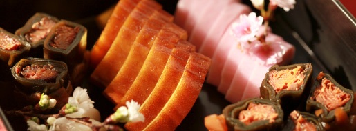 良いことが起きるように祈るための「縁起物」ですが、どのようなものがあるのでしょうか。たとえば、正月には「門松」を飾りますが、これは「神を待つ」の意味があるとのこと。地方によっては「橙(だいだい)」や「炭(すみ)」を飾るところもあるようで、これには「代々(だいだい)」子孫の繁栄を願う」とか「住み(すみ)」着くといった意味があるそうです。また、おせちは縁起物の宝庫で、片口鰯の小魚(ごまめ)を使う「田作り」は、かつて田畑に肥料として小魚を撒いたことから「五穀豊穣」を願う意味があり、にしんの子の「数の子」は「二親(にしん)から多くの子が出る」のでめでたい、「えび」は「腰が曲がるまで長生きする」、「ごぼう」は「細く、長く、幸せに」といった意味があるようです。ほとんどが洒落やこじつけの類いですが、縁起のよい食べ物は見た目も鮮やかで、本当に御利益がありそうですね。