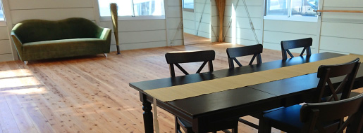 建物は、空の器を思わせるすっきりした空間。ここで生まれる出会い、つながり、学びなど、多様な可能性を受け容れてくれそうです。入り口近くには、詩人・翻訳家の矢川澄子さんから受け継いだというソファがさりげなく置かれ、傍のイグサのオブジェと相まって、清々しい中にもどこか懐かしい空気を醸し出しています。
