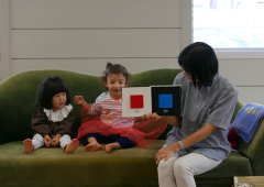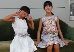 取材にうかがった日、田代さんのふたりのお嬢さんは津田さんお手製のワンピースを着ていました。インテリア用のテキスタイルで仕立てたもので、姉の惠海ちゃんのそれは、大胆な花柄。妹の陽花ちゃんは白地のワンピースに姉の余り布で作った花柄のベルトを合わせたもの。「子どものころ、近所のおばさんがこんなものを作ってくれたという記憶があると、いいかなぁと思って…」という津田さんの言葉に、D_warehouseの目指しているところを垣間見たような気がします。
