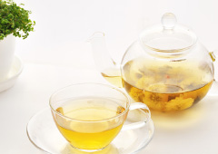風邪の初期症状や目の疲れ、充血などにも効果があるといわれる菊花茶は、花だけを抽出するお茶。乾燥させた花にお湯を注げば花開いていく様子が眺められ、抽出中も楽しめるのが魅力です。それを見たくて、透明の茶器を使う人も多いとか。菊の清々しい香りとほのかな甘みが気持ちをリラックスさせてくれて、ハーブティーのような感じで楽しめます。