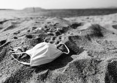 環境への影響が心配される不織布マスクですが、では、実際にどのくらいの量が海に流出しているのでしょうか。香港の環境団体「オーシャンズアジア」が発表した報告書によると、世界全体で2020年に520億枚のマスクが生産され、このうちの約3%にあたる15億6千万枚が海洋に流出したそうです。プラスチック量に換算すると、4,680~6,240トン。中型のレジ袋が1枚4g程度だそうですから、レジ袋に見立てると10~15億枚分のプラスチックが海に流れ出たことになります。
