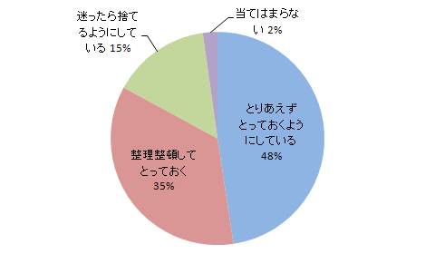 とりあえず取っておく、整理して取っておく合わせて8割強の人がものは捨てずに取っておくタイプです。