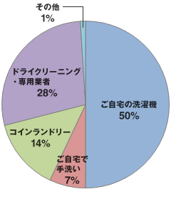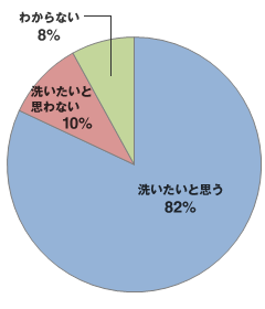 「ふとんを洗いたい」と思う方は多く82%の方が望んでいます。さらに「自宅の洗濯機で洗いたい」という方は多く50%にもなります。