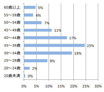 回答者の年代は、30代が44% 40代が28%でこのアンケートの中心年齢です。子供がいる人は29%です。