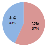 男女の割合は男性が21%、既婚率は57%です。
