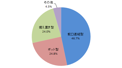 使っている浄水器のタイプは、蛇口直結型47%、どこにでも持ち運べるポット型25%、据え置き型が24%でした。