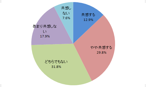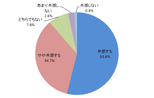 日本の上水道はきれいだと思うかと聞いたところ、共感する人は53.9%、やや共感する34.7%で大多数の人がきれいだと思っています。しかし、味に関しては問題を感じている人が多いようです。