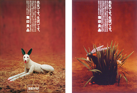 「生活の基本を満たし、役に立つ商品」を提供する無印良品。装飾ぬきで生(キ)のままの良さをいかす生活雑貨、家具などの品揃えもすすみました。ここではメキシコのフォークアートに生活の点景を象徴させて、自然に学ぶということを多様に楽しもうと呼びかけています。