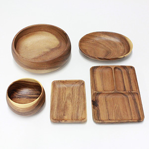 木製食器(アカシア)は2004年に10種類でスタートしましたが、人気が高く、現在では17種類に広がっています。