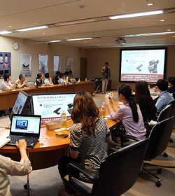 7月にリリースされたMUJI NOTEBOOK for iPhoneと、現在開発中のMUJI CALENDAR for iPhone。この2つのアプリケーションを体験いただくため、当日は約20名のブロガーのみなさまにお集りいただきました。