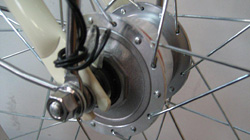 前輪にペダルの重さに影響の少ないハブダイナモを装着しています。