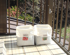 置き場所には、日当たりのよい場所を選ぶことが大切です。右上画像のベランダは、栽培に適した、よさそうな場所ですね。 社内モニターは別売のジュートカバーなしで先行モニタリングを行いましたが、別売のジュートカバーを組み合わせると、ジュートカバーがある程度、土止めの役割も担ってくれます。4月に種まきをしていただくお客さまモニターには、ジュートカバーの使い心地についても、モニタリングしていただきます。