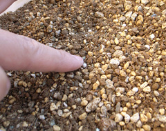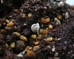 ここに種を植えました。証拠写真をパチリ。(指先にある、白くて丸い小さな粒が種です)