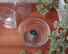 吸水前の育苗ポットは中央に小さなくぼみがあります。大きいお皿を用意した社内モニターは、「お水をたっぷり含ませられるように、大きめの受け皿を使用」とのこと