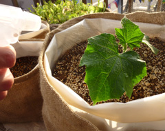 さて、今回寄せられたレポートと写真からまず、開発担当者は、育苗ポットを20Lのプランター袋に植え替える作業と、希釈した有機液体肥料を与える作業に注目しました。