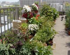 求められている要素としては、大きく3つあるように感じています。1つめは、狭い空間を有効に利用できる、棚やベンチのようなもの。2つめは、すっきりと見栄えよく整頓ができるような、収納の知恵。そして、3つめは、ベランダそのものを好みの見栄えに仕上げることができる、ウッドデッキをはじめとした空間装飾のアイデアです。 棚については、背の高いものも好まれていましたが、ベランダでは布団や洗濯物を干すなど、他の作業も行う機会もあることから、ベンチ程度の高さの棚を使いこなしている方がみられました。 用品や土の片づけは、共通の悩みどころになっているようです。また、用品や鉢を含めた、ベランダ全体のテイストをそろえることも、ベランダで緑を楽しむ空間をつくるためには、大きなテーマにあげられるでしょう。