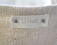 - オプションで購入できるジュートカバーについても、モニタリングをお願いしました。このモニターは麻のテープで、ジュートカバーの名札を手づくり。「5L栽培キットは、ジュート袋をかぶせると、どっちがどっちだか分かり辛くなってしまうので、麻のテープに布用スタンプでタグをつくって、金具で留めました」。