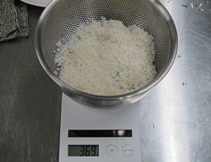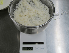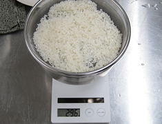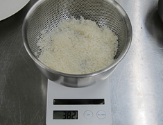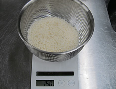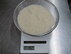 ①パンチングタイプ、メッシュタイプの両方に150グラムのお米を入れる