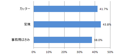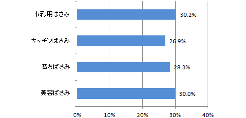 一般の事務用はさみ以外にも、用途が異なる他のはさみについてもあわせてお伺いしました。はさみに不便を感じている方の3割が事務用はさみと美容はさみに不便を感じているようです。