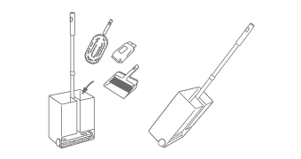 見た目的には、一番インテリアになじみにくい感はしましたが、日ごろ私が感じていた"モップがけをして出たゴミを何とかしたい"と言う強い思いで、ちりとりとしても使えるスタンド型にしました。収納時のかたちを、イラストの状態から、更に立てた方がスッキリとした印象にもなると思うのですが...。