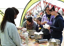 有事には手を取り合い地域の支えとなる、地元のラジオ局FMさがみ、J:COMをはじめとする様々な企業や、町田市内にキャンパスのある桜美林大学の学生ボランティアが2年連続で集結しました。
