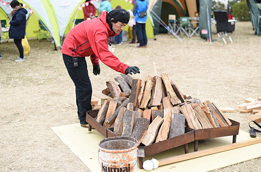 無印良品の4つのキャンプ場でそれぞれ働くスタッフが山崎団地に集合し、キャンプ用品を製造、販売するコールマンジャパン株式会社のスタッフと共に丁寧に指導を行いました。