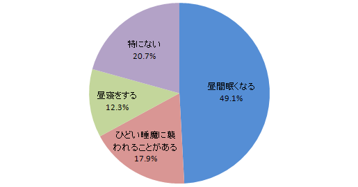 また、昼間眠くなる方が多い事も興味深い事実でした。実際、昼寝をする方が12%もいますが、だれでも昼寝をできる環境ではありません。
