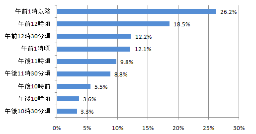 就寝時間は遅く、69%の人が12時以降に眠っています。