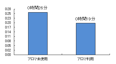 ねむり時間計で計測したデータからは、寝つきまでの平均時間がアロマ未使用時26分⇒アロマ使用時19分と約7分の短縮が見られました。