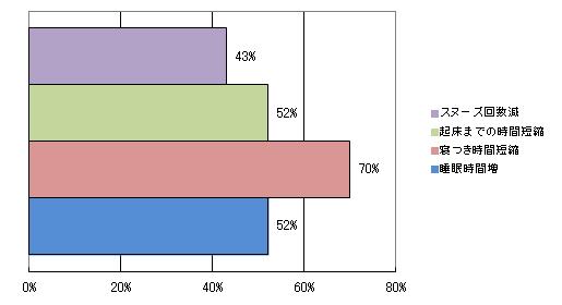 その結果、寝つきまでの時間短縮や、よく眠れるようになったと感じる方が7割になるという改善がみられましたのでご報告いたします。