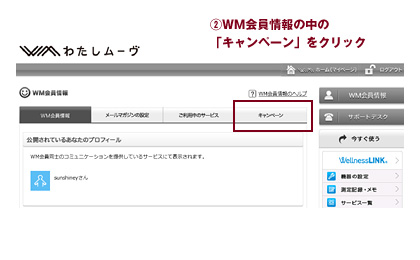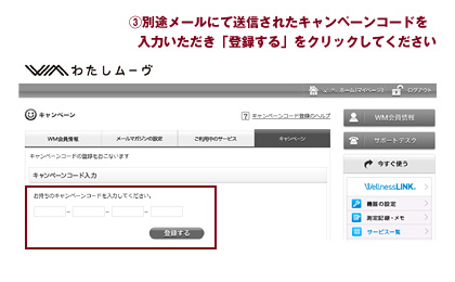 ※既に「わたしムーブ」または「ウェルネスリンク」会員の方は新規のご登録不要ですが、キャンペーンコードの入力をお願い致します