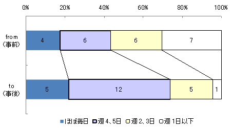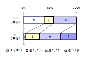 「一週間のうち、よく眠れる日は何日?」というアンケートでも、「4~5日」と答えた人が二倍に増え、「1日以下」だった人は6人も減りました(グラフ④)。