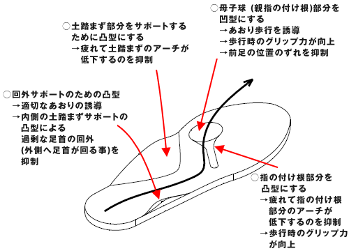 そしてもう1つ、このインソールは「あおり歩行」と呼ばれる理想的かつ効率的な歩行を実現しやすくするための設計になっていました。