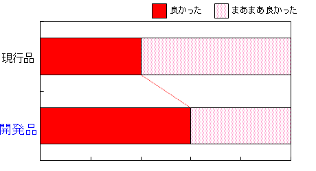 現行品と開発品を比較すると開発品を良かったと回答した人が増えました。