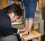 改良版スニーカーの開発もいよいよ大詰めです。「歩きやすい」「疲れにくい」を目標に評価をさまざまな角度から行ない修正を加え、生産やコストも考慮して最終的な仕様を決定してついに最終サンプルが出来上がりました。