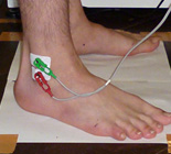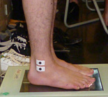 まず両足のくるぶしの上とそのすぐ上に2枚の電極シールを添付します。
