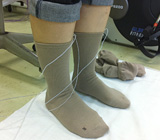 前回導き出された「直角靴下の心地よさ」のキーワード、「ズレ落ちない」や「締め付けない」を、120度の靴下と比較実験をして証明しようというのです。