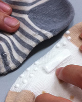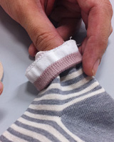 さらに、足底部分の滑り止め材を改善したり、お名前欄を口ゴムの裏に移動するなど、こどもの靴下ならではの新しい工夫を随所に盛り込みました。