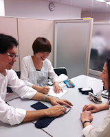 こどもの直角靴下も、おとなの靴下同様、工場の技術者の協力が欠かせません。こどもの靴下の製造工場は中国ですが、試作品が出来ると工場のスタッフの子供に履いてもらって意見をもらうなど、参画意識をもってもらう工夫もしました。