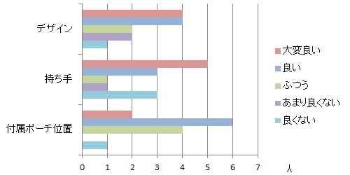 同時に改良希望もあり、「持ち手が固く太くて物の出し入れや別のカバンに入れる時にじゃまである」や「中身が出ないようにして欲しい」というご意見をいただきました。この点に関しては、持ちやすさやデザイン性を損ねないような改良方法はないものか、所内で検討を重ねております。
