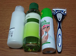 - シャンプー、ボディソープ、シェービングクリーム、髭剃り、ボディタオル
