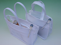- スパポーチの素材EVA樹脂は、しなやかで濡れても簡単にふき取れる素材です。サイド、底面がナイロンメッシュですので水切れ及び通気性がよく、中が濡れても蒸れにくくなっています。歯ブラシケースもスパポーチと同じ素材で、底がナイロンメッシュです。