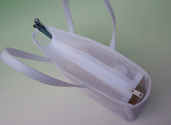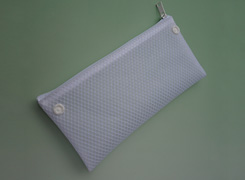 別のバックに入れて持ち歩くときに中身が出ないように、ファスナーを付けました。中身の出し入れにじゃまにならないように、ファスナーは内側の側面にぴったり収まるようにしました。