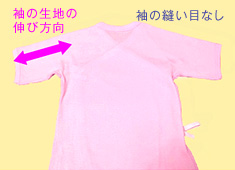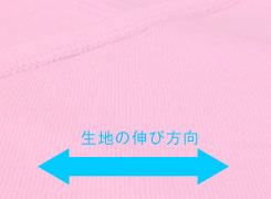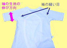 袖の生地は肩から脇にかけて縦方向に伸びます