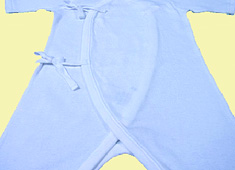 フライス編はゴム編ともいい、横方向に伸びる特性があります。また洗濯をするとこの伸びは元に戻ります。このフライス編の特性を活かして、いつも赤ちゃんの体型・体格に合わせてフィットします。またフライス編の伸縮性により、着替えの時に脱がせやすく、着せやすくなっています。