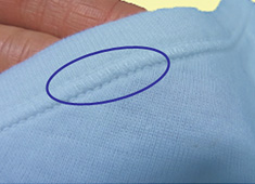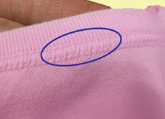 今まで肌着の縁(バインダー)の縫い代は、4枚重ねのバインダー縫製にしていたので約2mmの厚みがありました。今回は3枚重ねのバインダー縫製に変更することで約1.5mmまで薄くなり、肌あたりがやわらかくなりました。