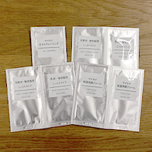 スキンケア用品、ヘアケア用品の1回分のセットができました。旅行用はもちろん、お試し用としてもお使いいただけます。スキンケアセットは乾燥が気になる肌に潤いを与えるしっとりタイプです。 セット内容:マイルドオイルクレンジング 3ml×1、マイルド保湿洗顔フォーム 3g×2、化粧水・敏感肌用しっとりタイプ 3ml×2、乳液・敏感肌用しっとりタイプ 3ml×2